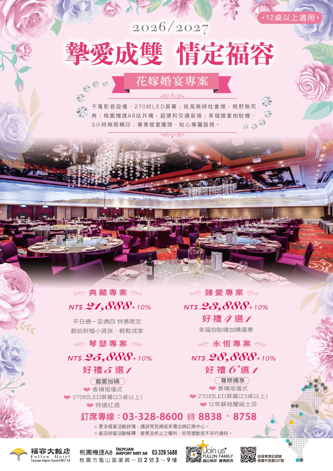 2026&2027婚禮專案|『摯愛成雙.情定福容』,每桌21,888起