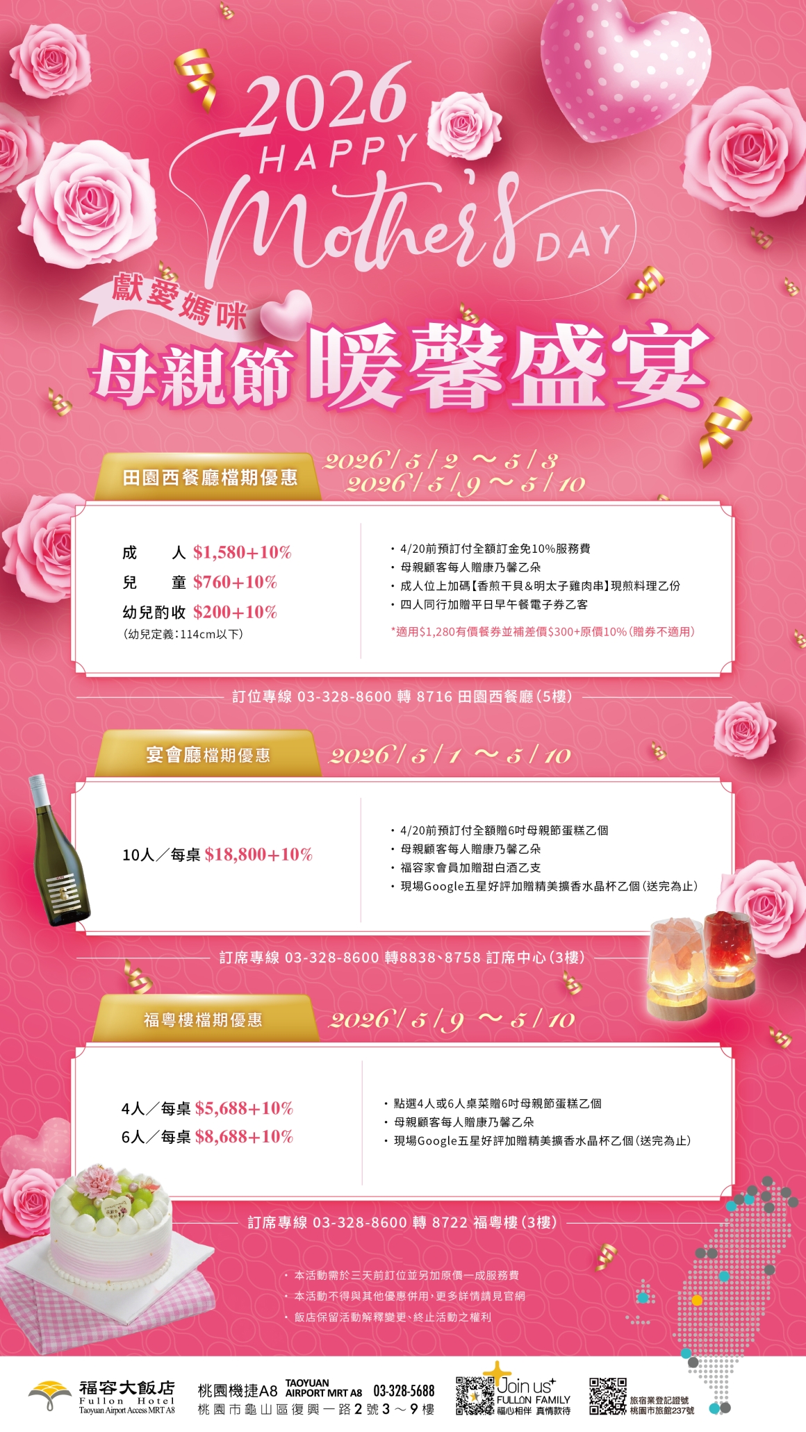 2026 母親節暖馨盛宴|中式宴席 ‧ 福粵樓 ‧ 西式自助餐|預訂開跑