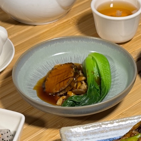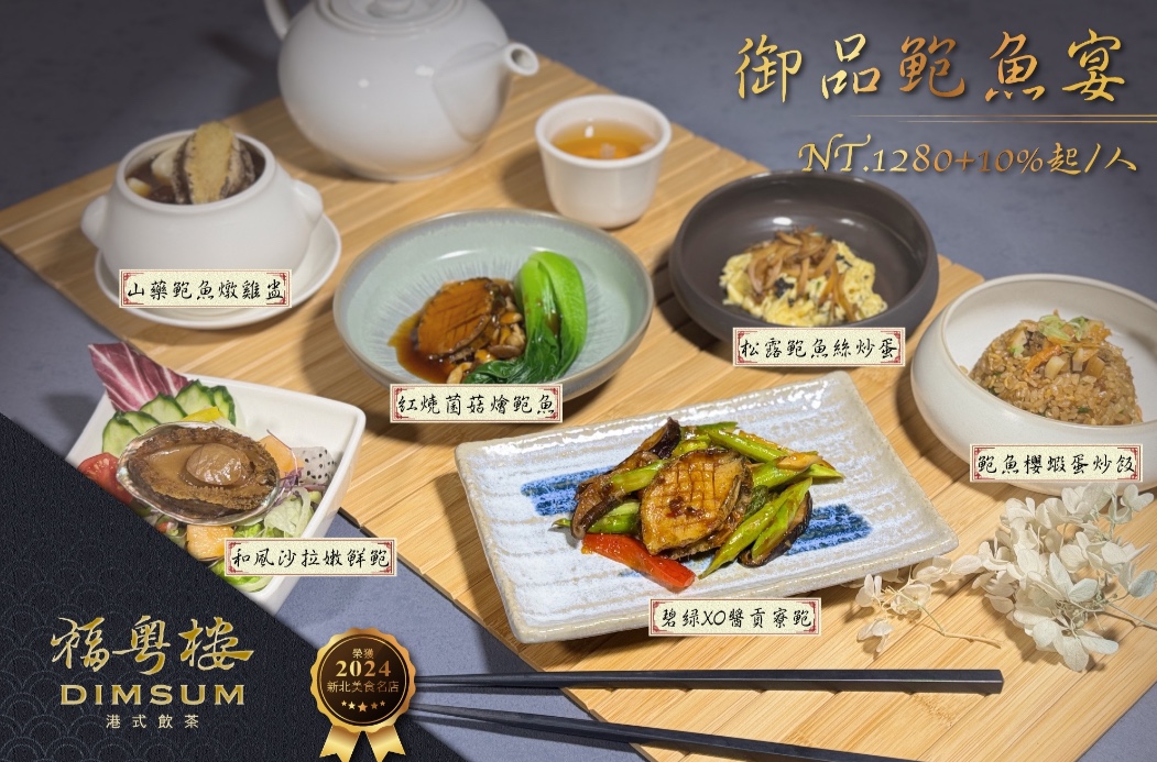 秋冬限定的「御品鮑魚宴」以東北角在地珍饈「貢寮鮑」為主角,嚴選肥美鮮甜的活鮑,結合粵式料理手法,創作出多道細膩講究的美饌。從山藥鮑魚燉雞盅的溫潤湯香,到碧綠XO醬頁籃鮑的層次鮮味,每一口都蘊含著東北角大海的氣息與主廚的匠心。