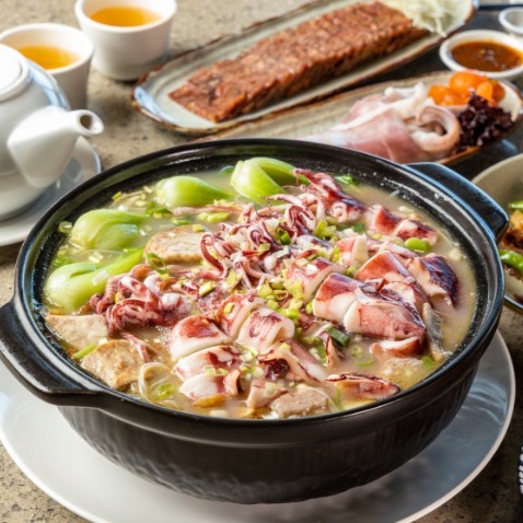 使用大溪漁港捕獲的小卷,搭配濃郁香甜的芋頭,讓人一口接著一口,鹹香鮮甜的湯頭,是東北角最受歡迎也最具特色的鍋物