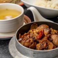 嚴選雞腿肉丁與辛香料爆出香氣再搭配花雕酒與醬油黃金比例,燉煮出醬香酒香雙重美味,爆炒時間嚴格控管,最後最佳火侯起鍋,搭配美味米飯和熱湯,每塊雞腿肉都超入味。