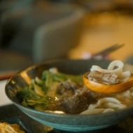 以牛大骨及星級主廚秘製香料熬制超過5小時,燉煮出清燉鮮甜的湯底,再加入手工製成的刀削麵條,與牛腱肉大口咬下,彈牙又多汁口感極佳。