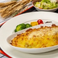 用去皮雞胸肉切塊,搭配青醬、菇、紅蘿蔔、新鮮菠菜調理入味,再加上濃郁帕馬森起司混和義大利螺旋麵,最後覆蓋上絲滑的雙色起司放入烤箱做成焗烤,雞肉軟嫩不柴,美味鮮甜更提升。