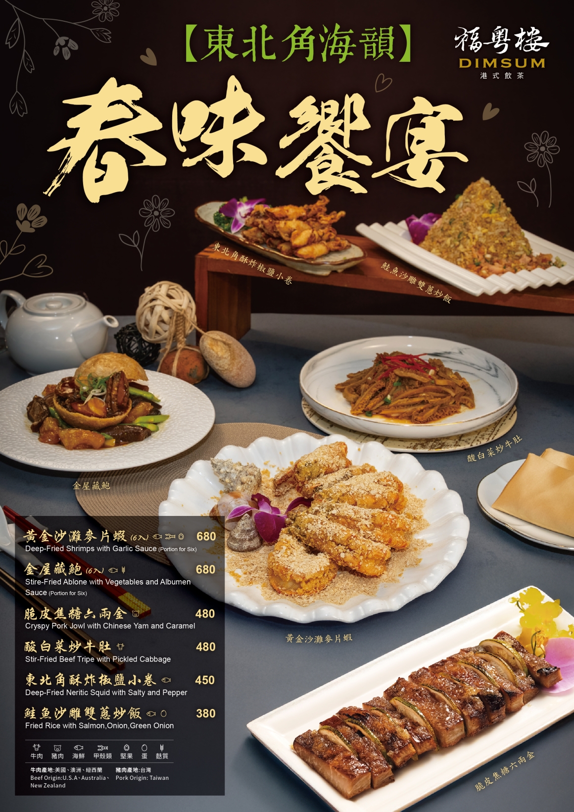 料理,不只是味道,而是一段與土地同行的故事。福粵樓以「年度明星餐點」為主軸,隨著四季更迭,精選東北角與台灣各地的當令食材,由主廚親自詮釋每一道料理的靈感來源與風味層次。從春夏的清爽鮮香,到秋冬的溫潤厚實,每一季,餐桌上都有一位主角,邀您慢慢品嚐屬於這個季節的美好時光。2026.04.01 - 2026.06.30 -