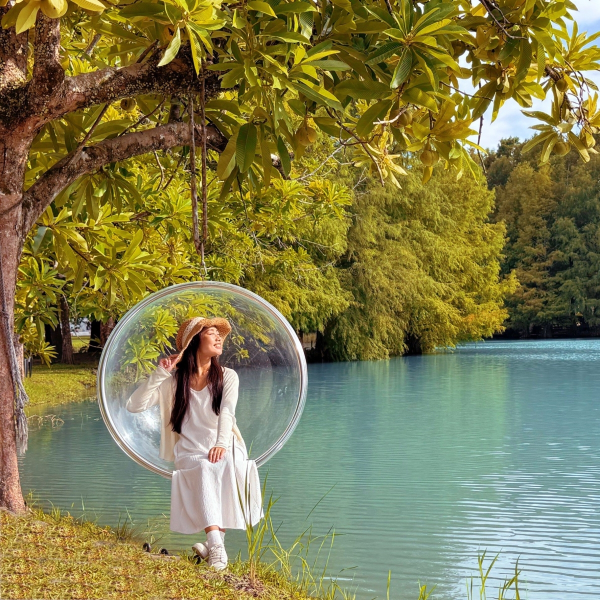 花蓮網美打卡景點推薦,湖水清澈如鏡,四周群山環抱,漫步小徑彷彿走進世外桃源,坐在湖邊發呆或拍照都超療癒,放慢步調享受自然美好。