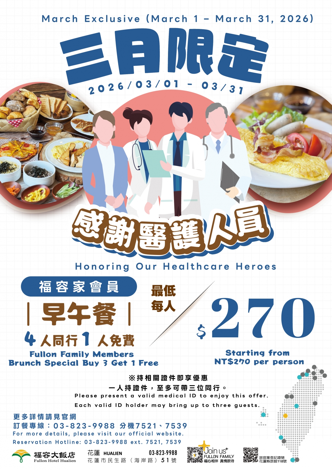 醫護人員憑服務證享用早午餐,加入會員 四人同行一人免費
