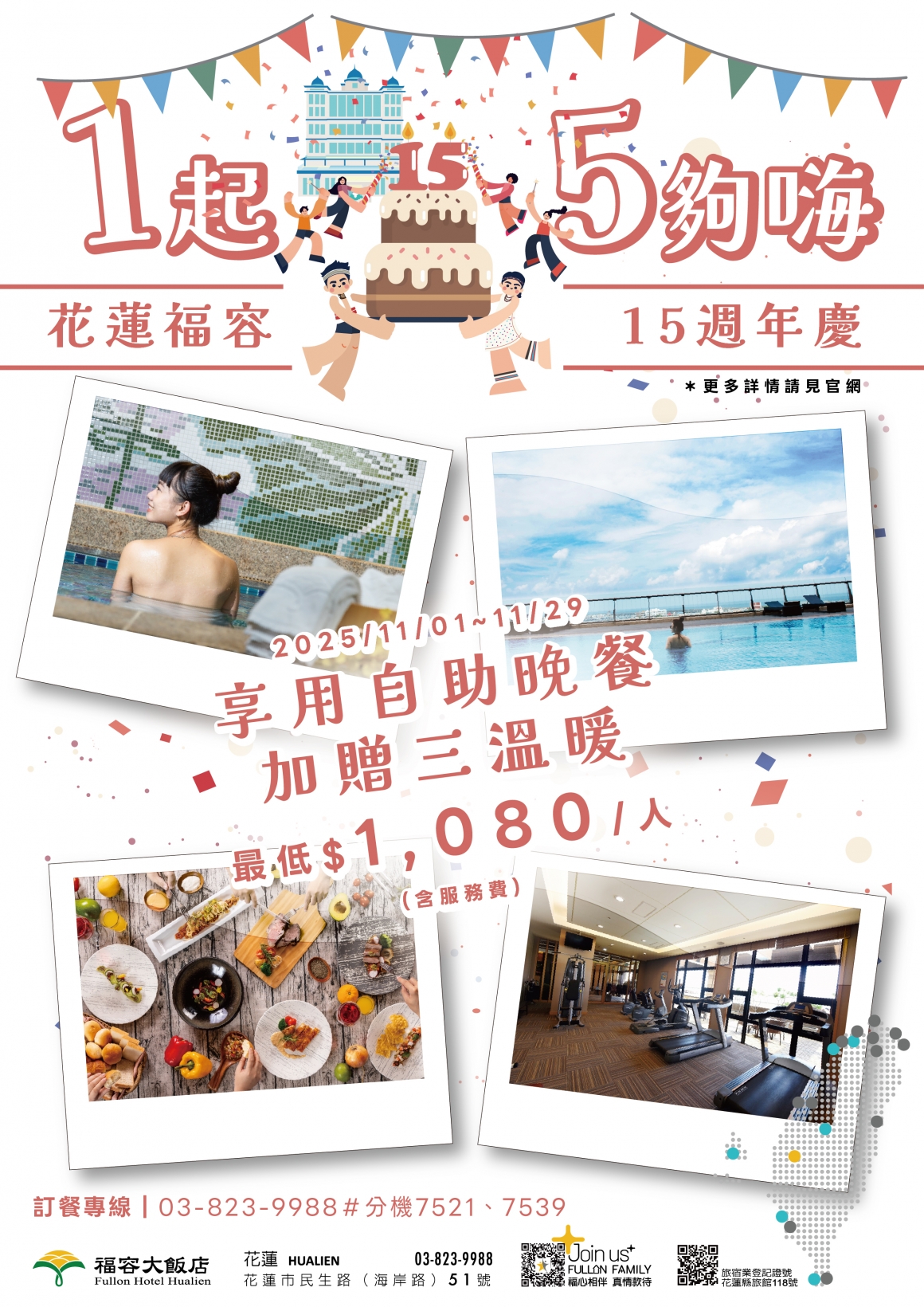 【最新優惠!免10%服務費】 朋友啊~今晚不開伙 來去花蓮福容呷BUFFET! 花蓮鄉親一律85折2025.01.03 - 2025.12.27 -