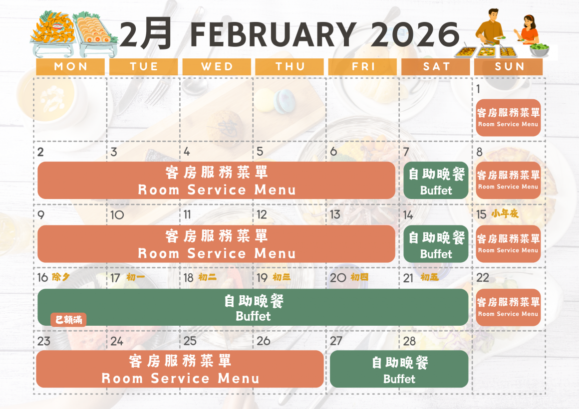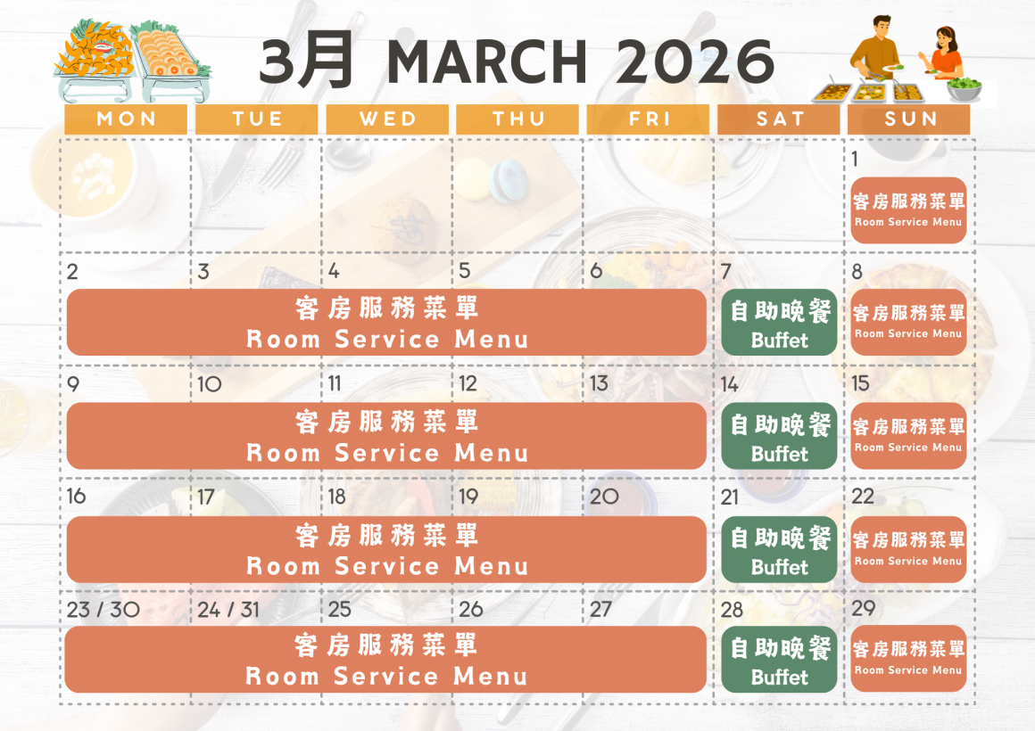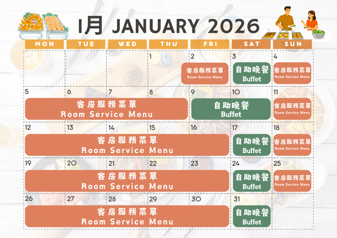| 自助晚餐開餐日 | 客房服務菜單 |