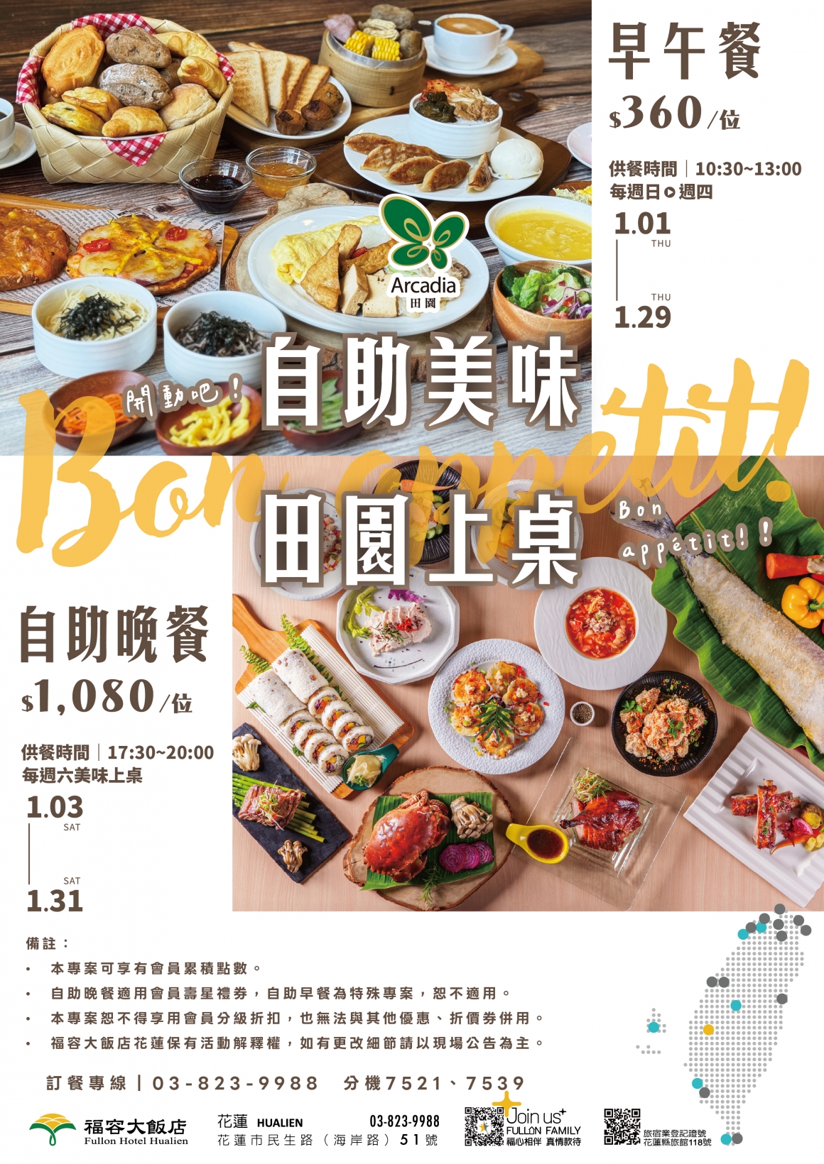 超多樣花蓮在地食材入菜,1月優惠價登場囉!自助晚餐開餐日看這邊>>