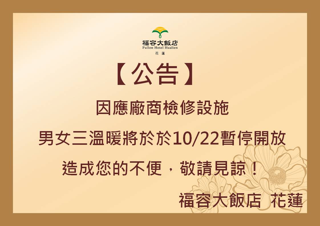 【三溫暖公告】男女三溫暖設施維護,將於10/22暫停開放