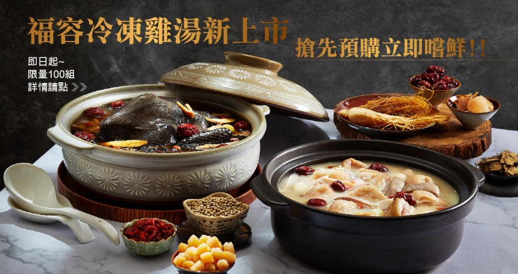 福容大飯店首度推出兩款冷凍雞湯—雙蔘烏骨雞湯與胡椒豬肚雞湯