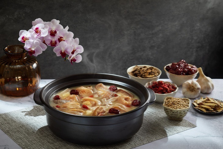 藥材的高雅清香與烏骨雞的鮮美相互交織,湯頭甘醇厚實,溫潤養身。
