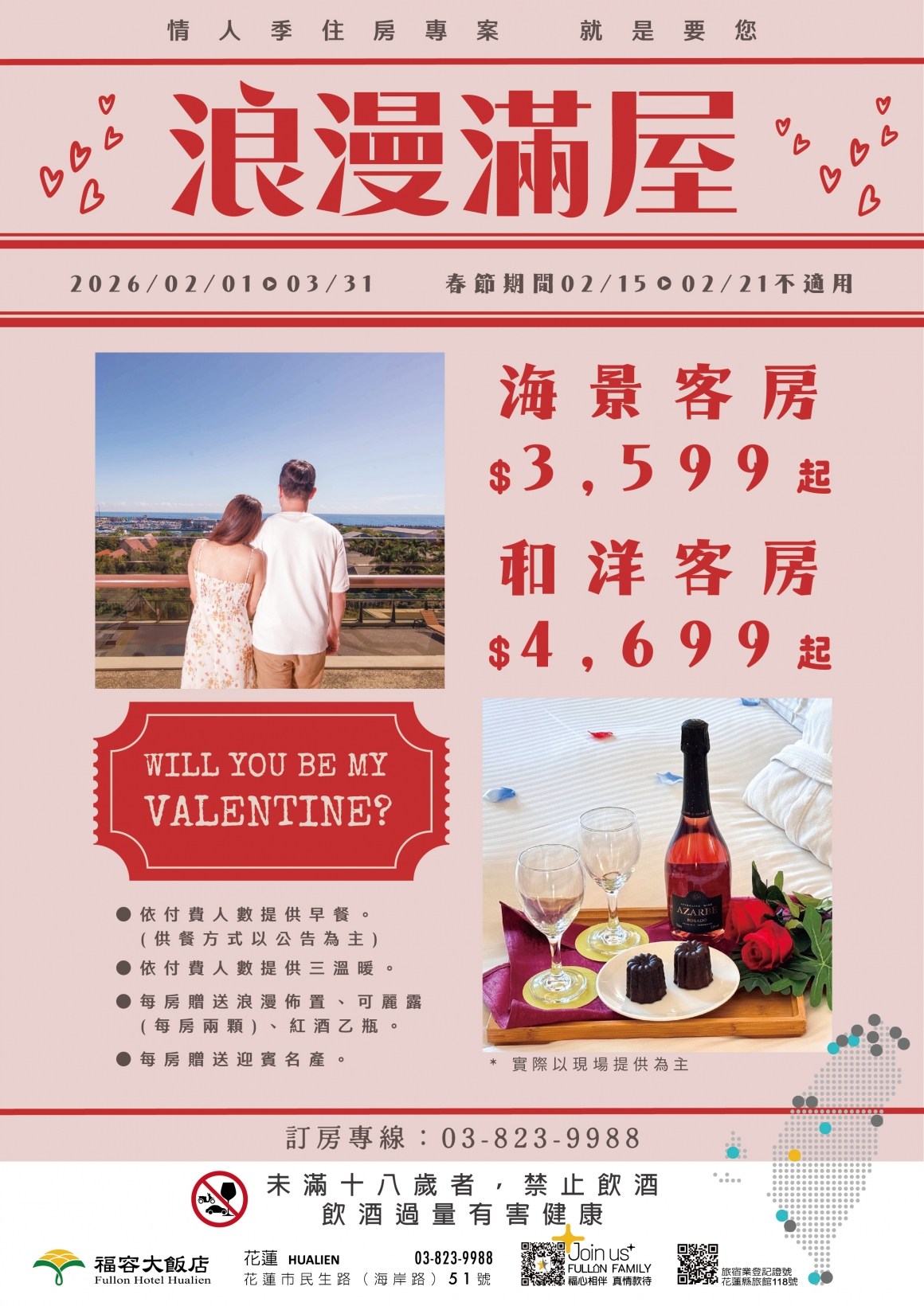 ● 雙重優惠不得併用,福容大飯店 花蓮保有活動解釋權