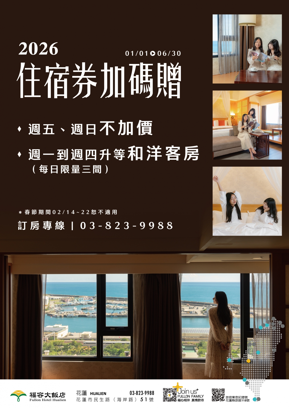 歡慶花蓮福容15歲生日快樂! 週年慶住宿、餐飲優惠及抽獎活動 登錄發票就有機會抽和洋客房,另外還有多種社群抽獎活動,和花蓮福容一起五夠嗨!即日起 - 2026.01.31 -