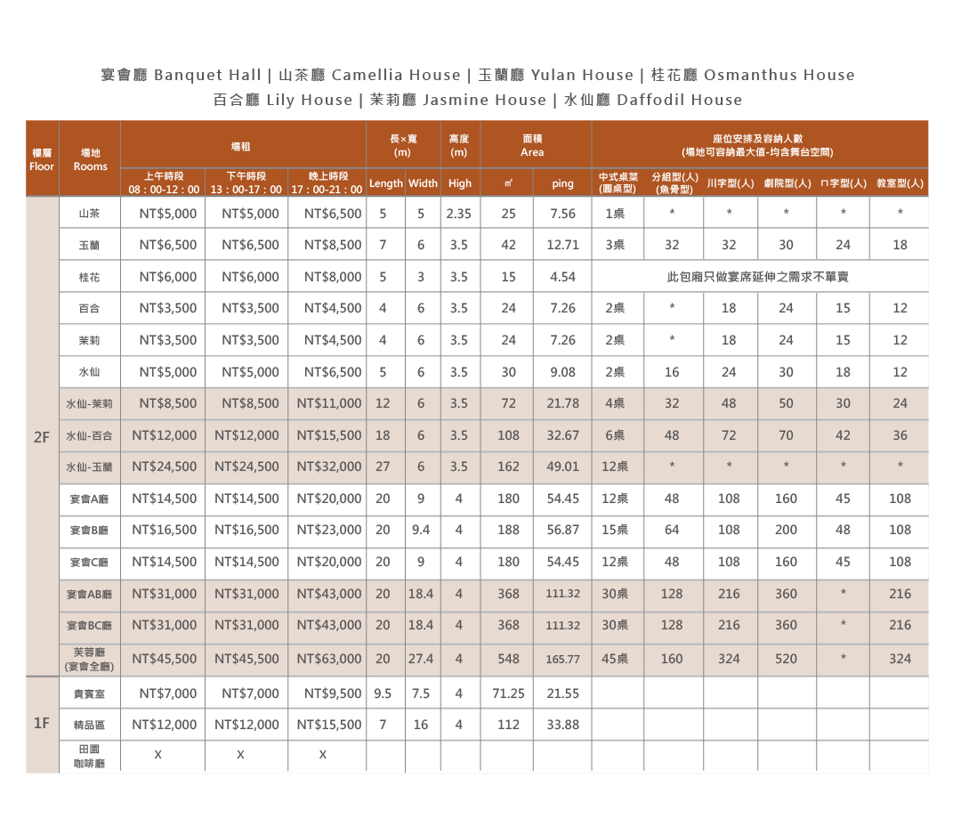 宴席每桌 NT$6,000+10%(十人桌) 起