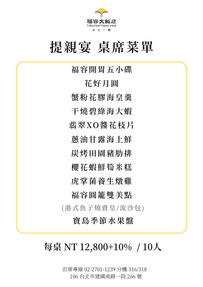 ▋專案時間:2025年10月01日至2026年6月30日福容台北一館打造全新【提親宴專案】規劃吉祥如意菜單及準備貼心伴手禮
