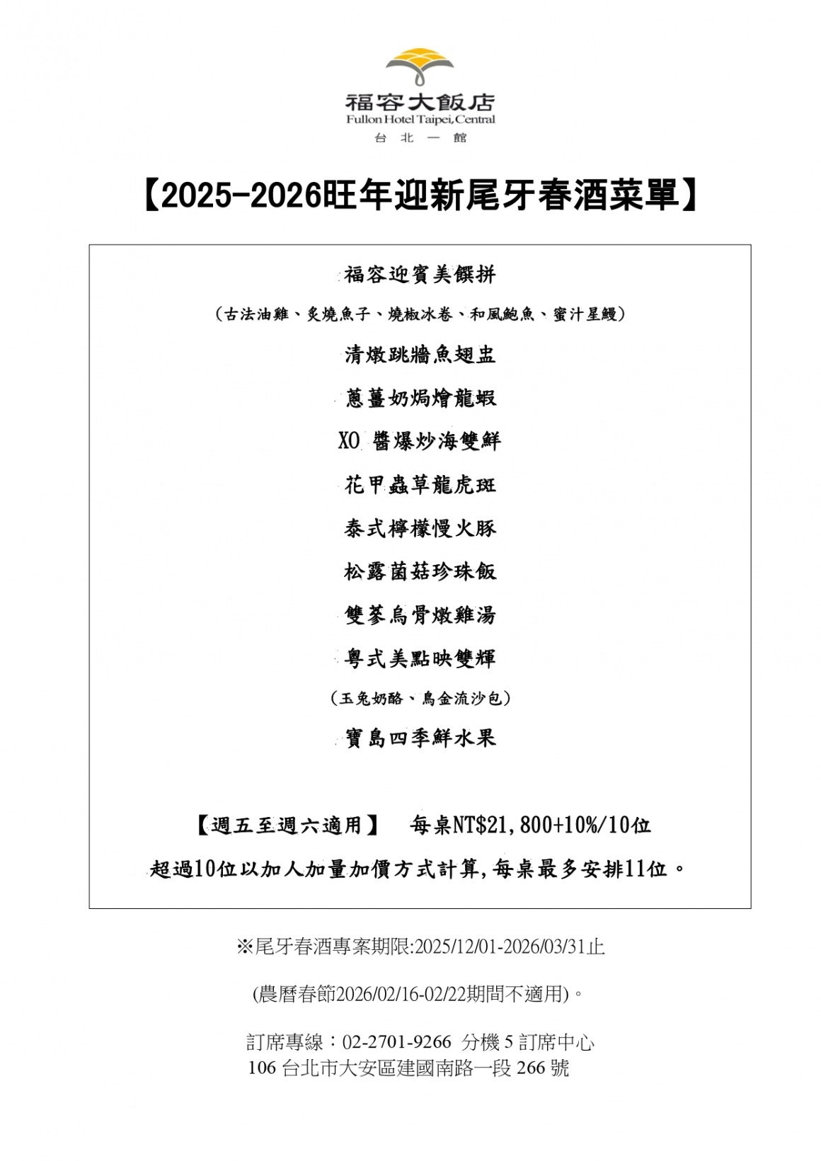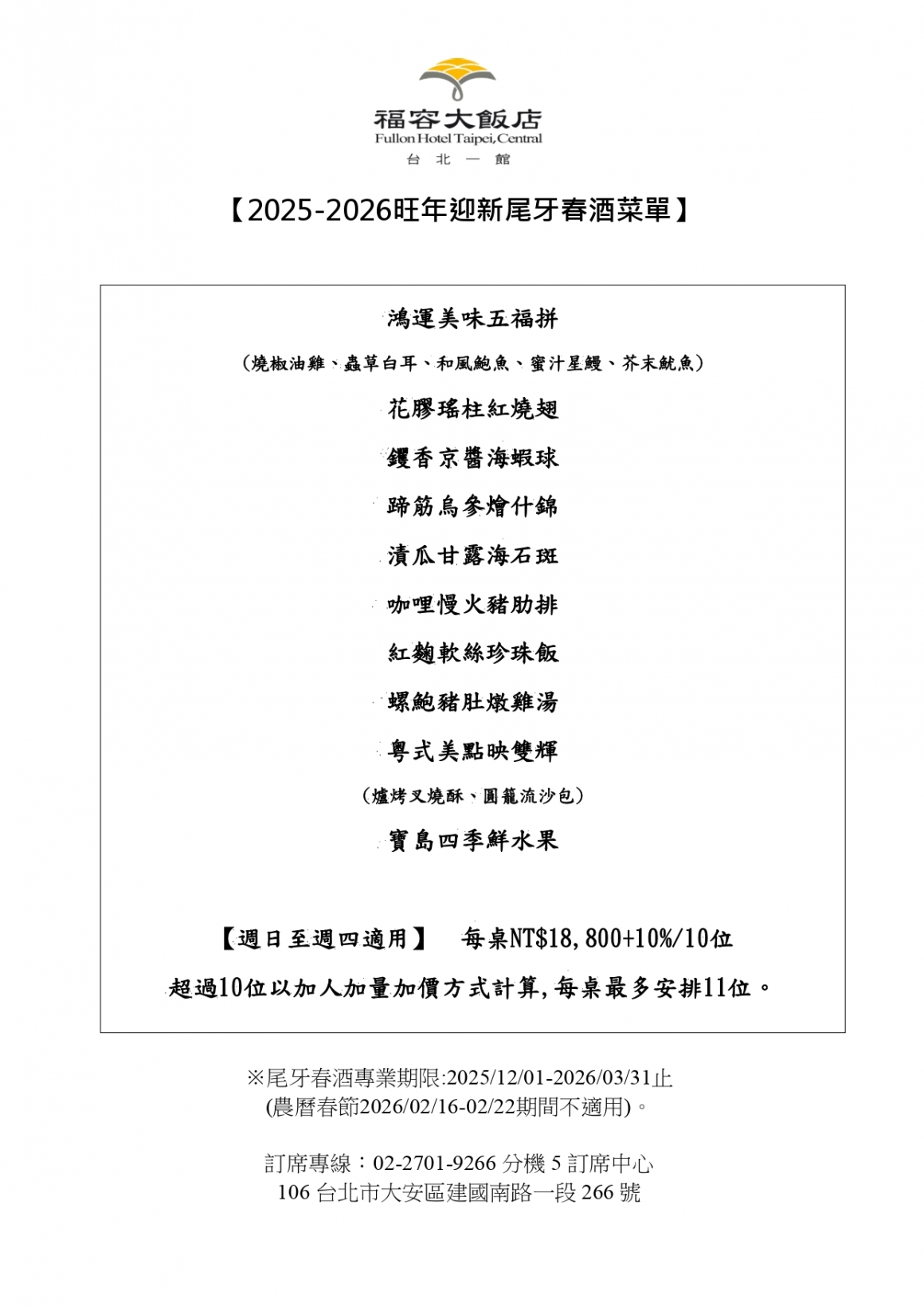 ▋更多滿額加碼或驚喜優惠請洽 02-2701-1239 轉 5 訂席中心 線上詢問