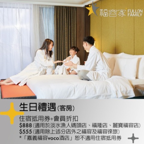 $888(適用於淡水漁人碼頭、福隆、麗寶福容店) /
