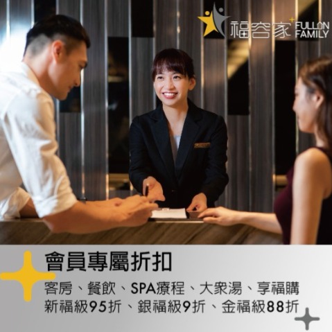 福容家會員禮遇適用福容大飯店連鎖分店、福容徠旅連鎖分店、麗寶福容店及麗寶賽車旅店