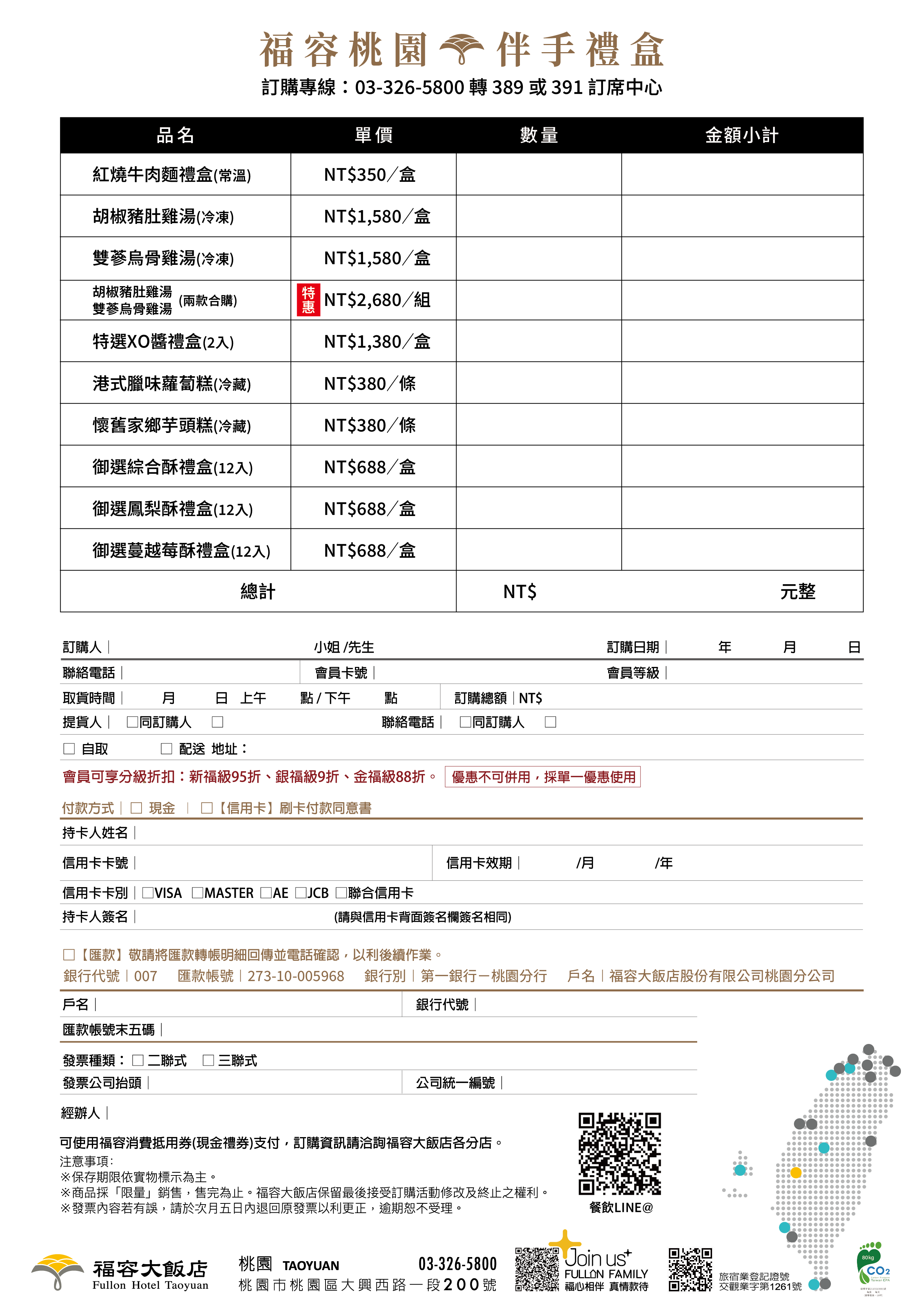 - 福容家會員享折扣優惠:新福級享95折、銀福級享9折、金福級享88折。