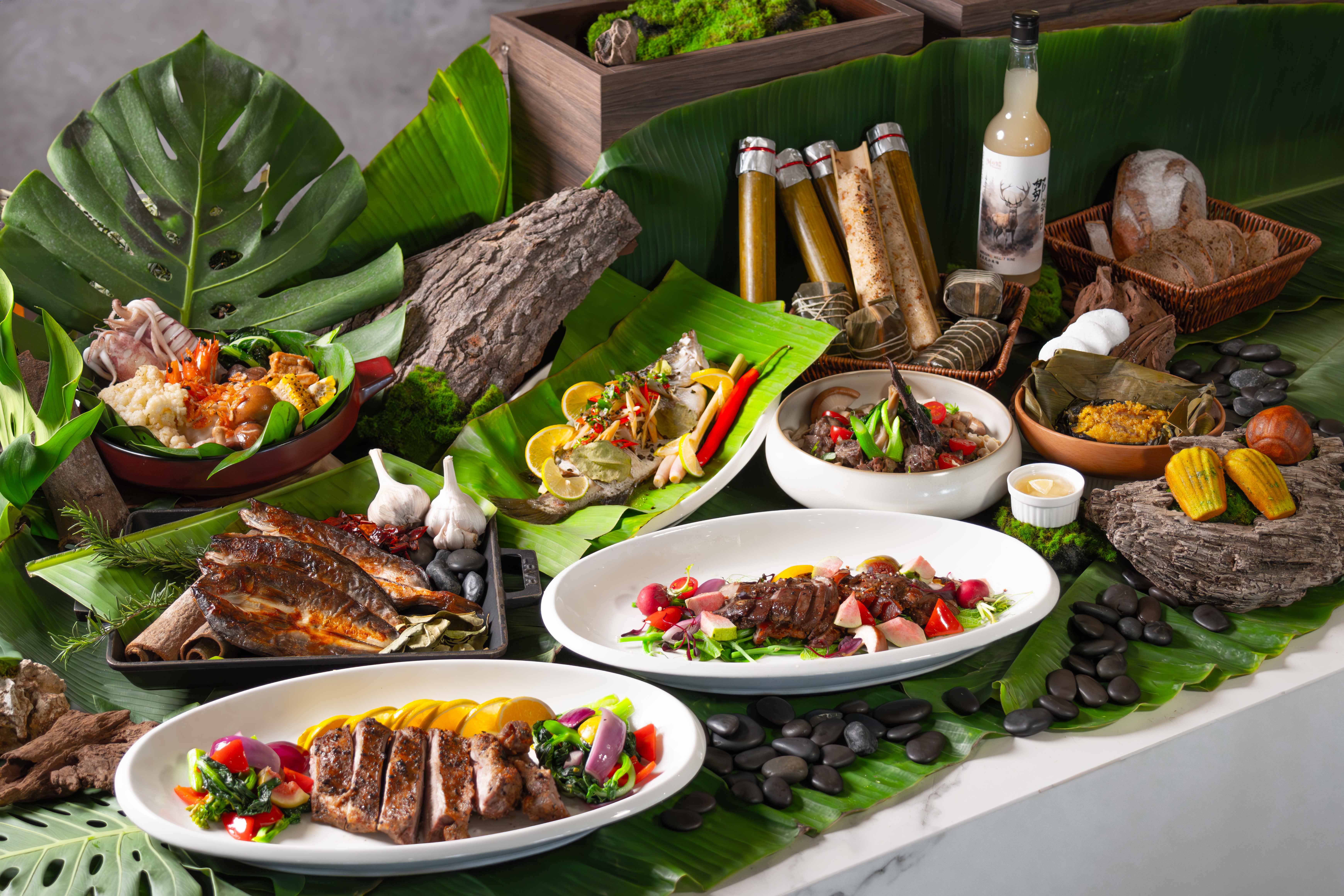以山林為靈感,將原住民族的飲食文化化作一道道餐檯風景。 「原民之作」不只是吃到飽,而是一場關於土地、香料與火候的文化對話。