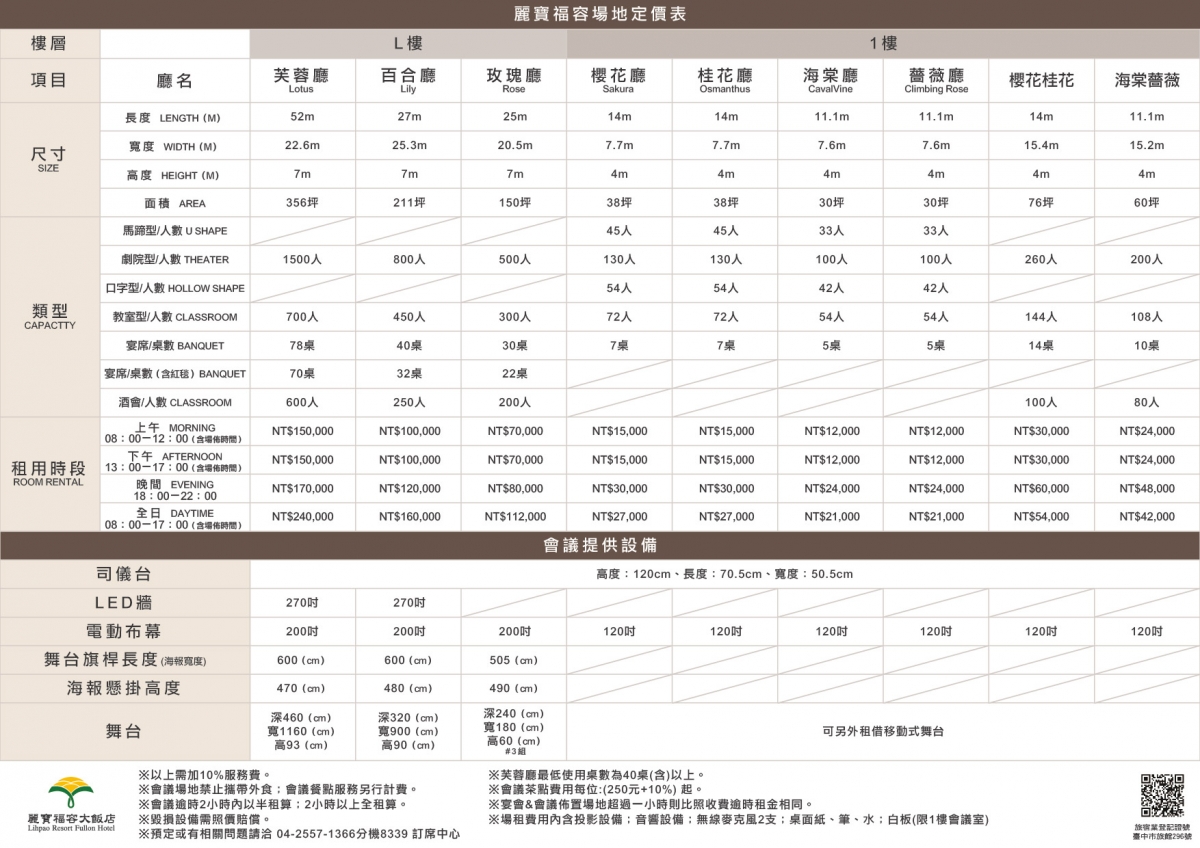 廳名 長度(M) 寬度(M) 坪數(M2) 高度(米) 宴會型/10人桌數